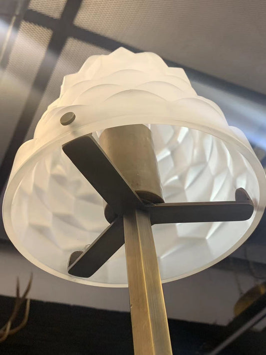 Brassco - Vintage Industrial Table Lamp with Art-Deco Glass 12'' Shade